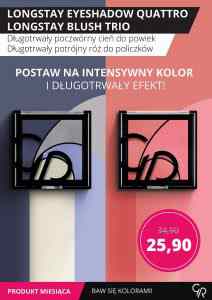 Postaw na długotrwałe i efektowne wykończenie oczu. W grudniu naszymi produktami miesiąca zostały: długotrwały, poczwórny cień do powiek oraz długotrwały, potrójny róż do policzków.