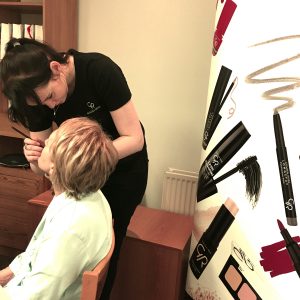 Tematem przewodnim ostatniego spotkania był makijaż oka. Panie uczyły się i doszkalały w jaki sposób najlepiej podkreślić i wyrysować brwi czy uwydatnić oko. Wizażystki najpierw pomagały dobrać odpowiedni kolor do danej karnacji i typu urody, a później  pokazywały w jaki sposób należy wykonać makijaż brwi. Następnie Panie próbowały same. Padały również pytania o właściwą pielęgnację skóry po długotrwałym procesie leczenia oraz  jak w łatwy i szybki sposób ukryć niedoskonałości czy zamaskować przebarwienia. Na wszystkie zadane pytania odpowiadały  nasze wizażystki: Paulina i Marlena. Warsztaty zostały przeprowadzone przy współpracy z łódzką Fundacją Kocham Życie, która od lat wspiera osoby borykające się z chorobą nowotworową.