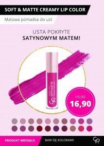 Już od kilku lat lat ogromnym powodzeniem wśród produktów do ust są pomadki matowe. Wszystkich wielbicieli tego typu pomadek do ust zachęcamy do korzystania z naszej grudniowej promocji na pomadki Soft & Matte Creamy Lip Color, które charakteryzują się delikatną, długotrwałą formułą z matowo-satynowym wykończeniem. wybór kolorów jest na tyle duży, że każdy znajdzie coś dla siebie. Warto również podkreślić, że kosmetyk jest bardzo łatwy w aplikacji.