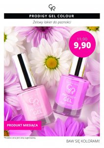 Seria lakierów Prodigy Gel Colour dostępnych w tym miesiącu za jedyne 9,90 zł charakteryzują się niezwykle mocną pigmentacją i trwałą formułą. Z ich pomocą w bardzo łatwy i szybki sposób wykonamy elegancki manicure na każdą okazję. Lakier daje efekt żelowych paznokci, a bogata paleta kolorystyczna pozwala na znalezienie ulubionego odcienia lakieru.